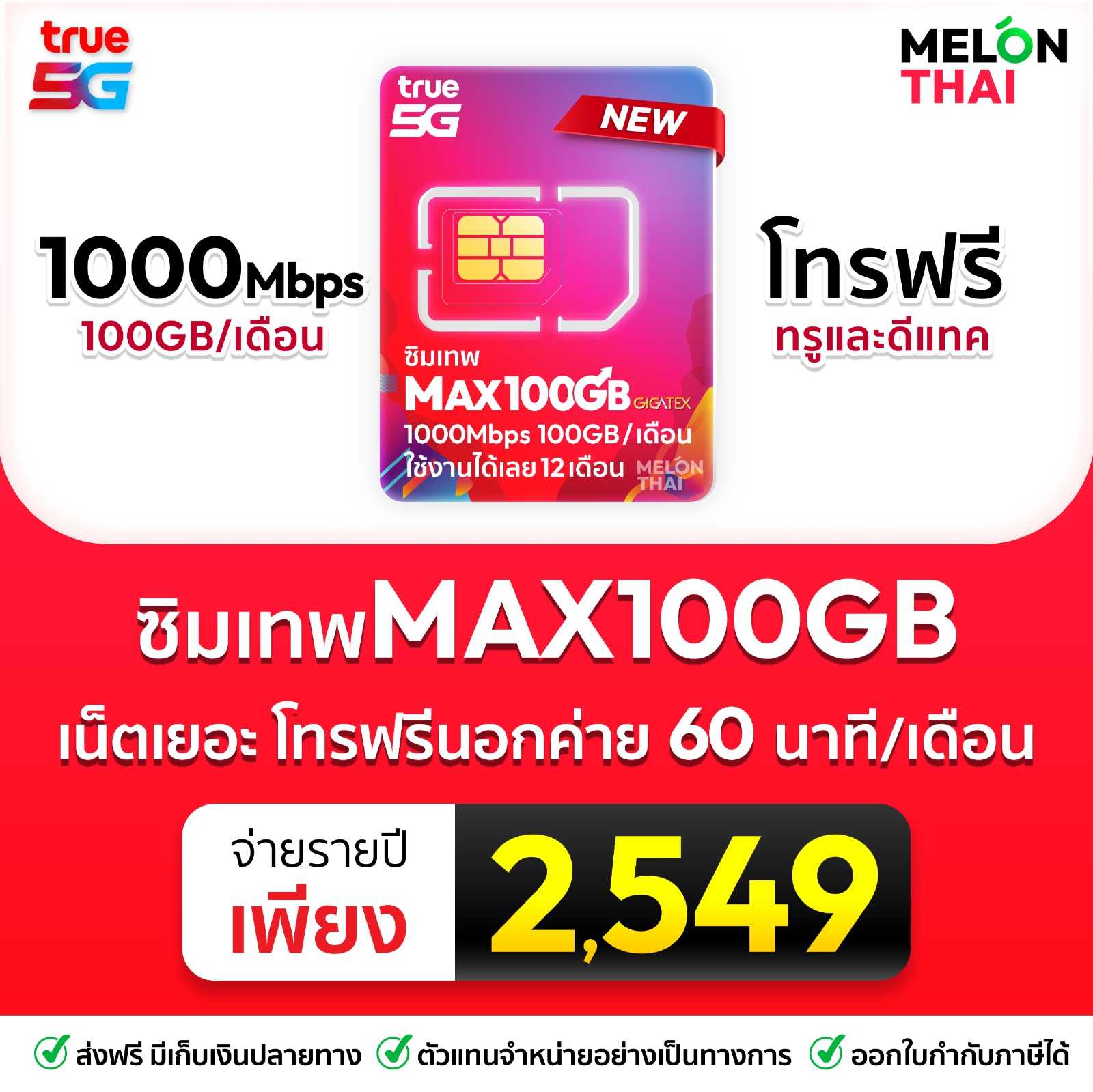 ซิมเทพ True Max100 ความเร็วเต็ม Max ใช้ได้เดือนละ 100GB โทรฟรี *